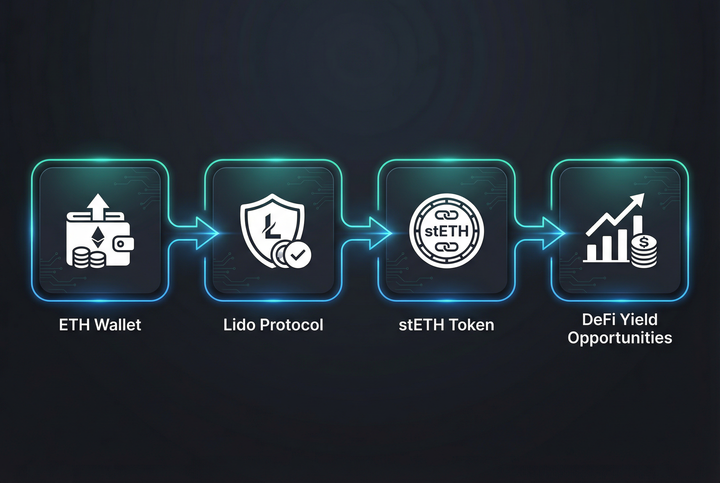 - Receive stETH. Within minutes, your wallet will show stETH. This token automatically accrues staking rewards daily — your stETH balance increases over time without any action on your part.